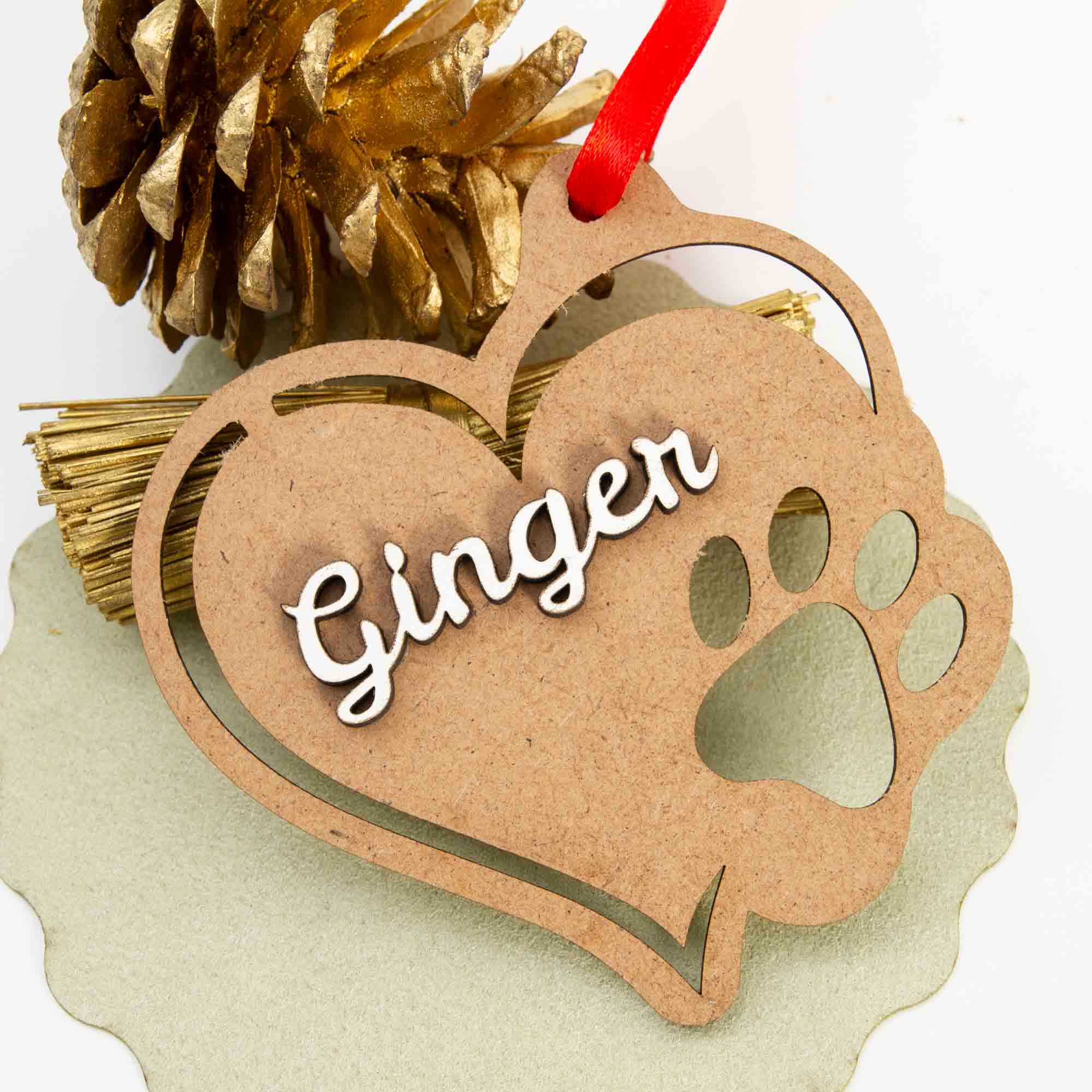Un adorno en forma de huella personalizado con el nombre de tu mascota. Sencillo, bonito y perfecto para el árbol.